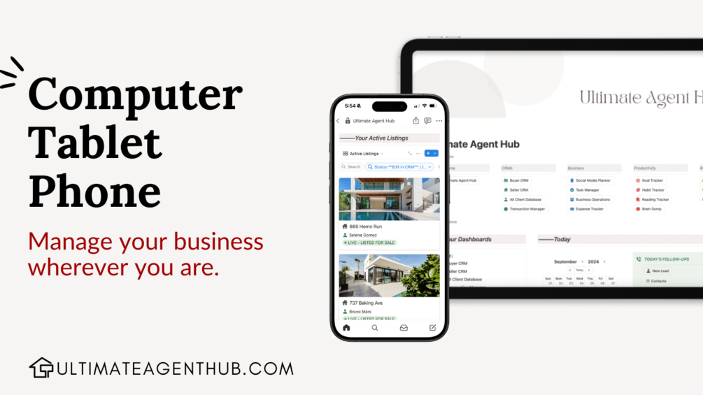 Ultimate Agent Hub is the new command center for your real estate business. Master your CRM, organize tasks, and track commissions—all in one easy-to-use Notion system.